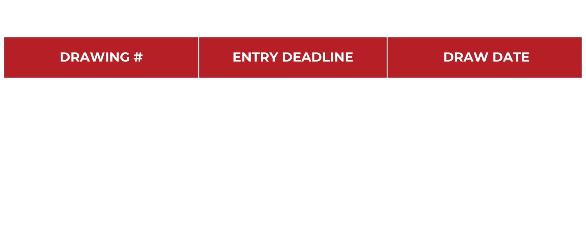 Entries must be submitted prior to 11:59:59 pm (CT) on the Entry Deadline date to be included in that drawing.